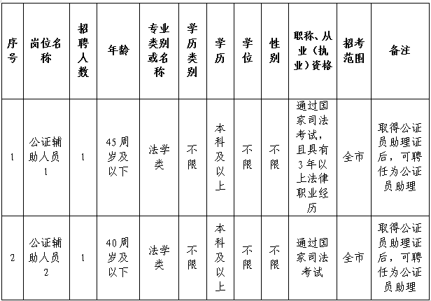 因工作需要,根據(jù)縣委組織部、編辦、縣人社局、財(cái)政局印發(fā)的《上杭縣縣直機(jī)關(guān)事業(yè)單位編外人員聘用管理暫行規(guī)定》(杭委編辦〔2021〕24號(hào))和《關(guān)于加強(qiáng)我縣鄉(xiāng)鎮(zhèn)機(jī)關(guān)事業(yè)單位編外人員聘用管理的規(guī)定》(杭人社〔2020〕78號(hào))的相關(guān)規(guī)定,擬面向社會(huì)公開招聘上杭縣公證處編外工作人員,現(xiàn)就本次公開招聘的有關(guān)事項(xiàng)制定方案如下: